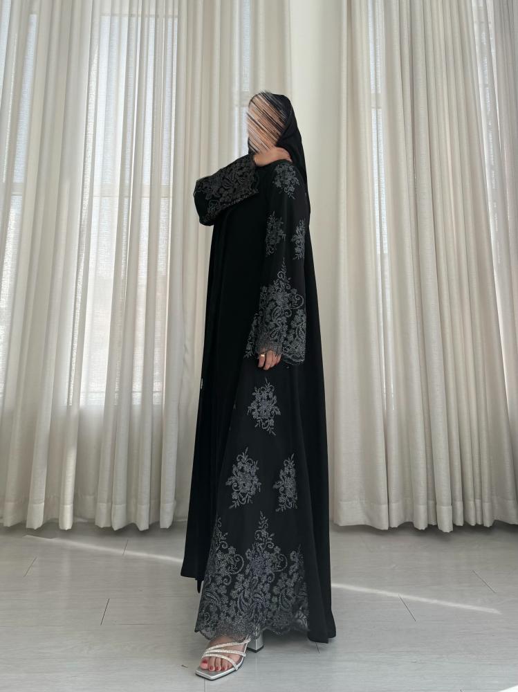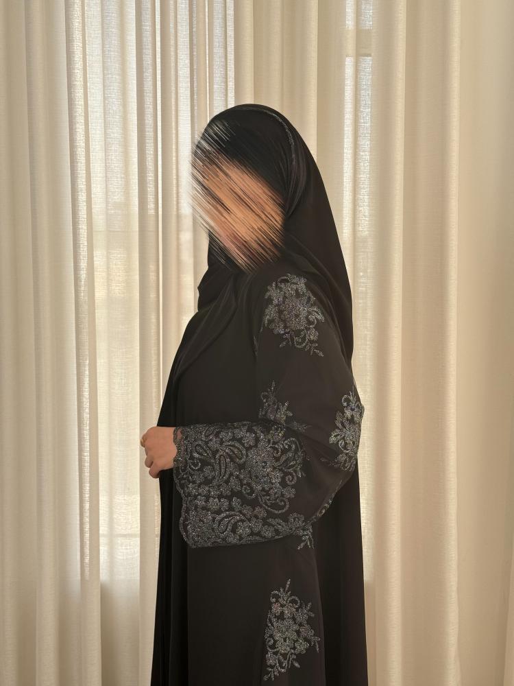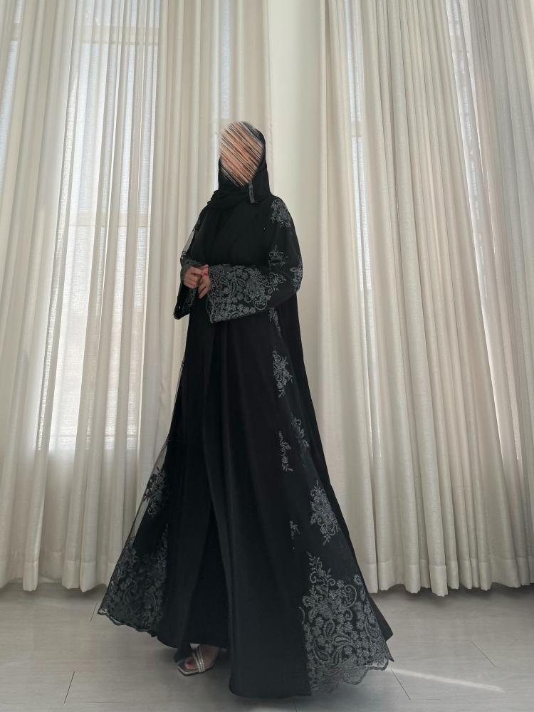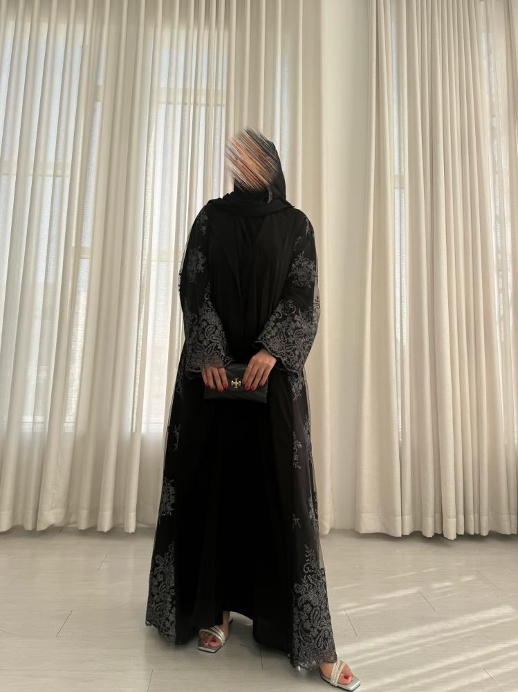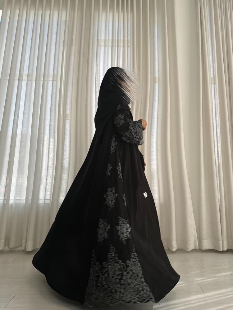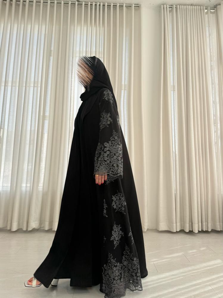 - وجود تدخيله دانتيل مطرز فضي على العبايه